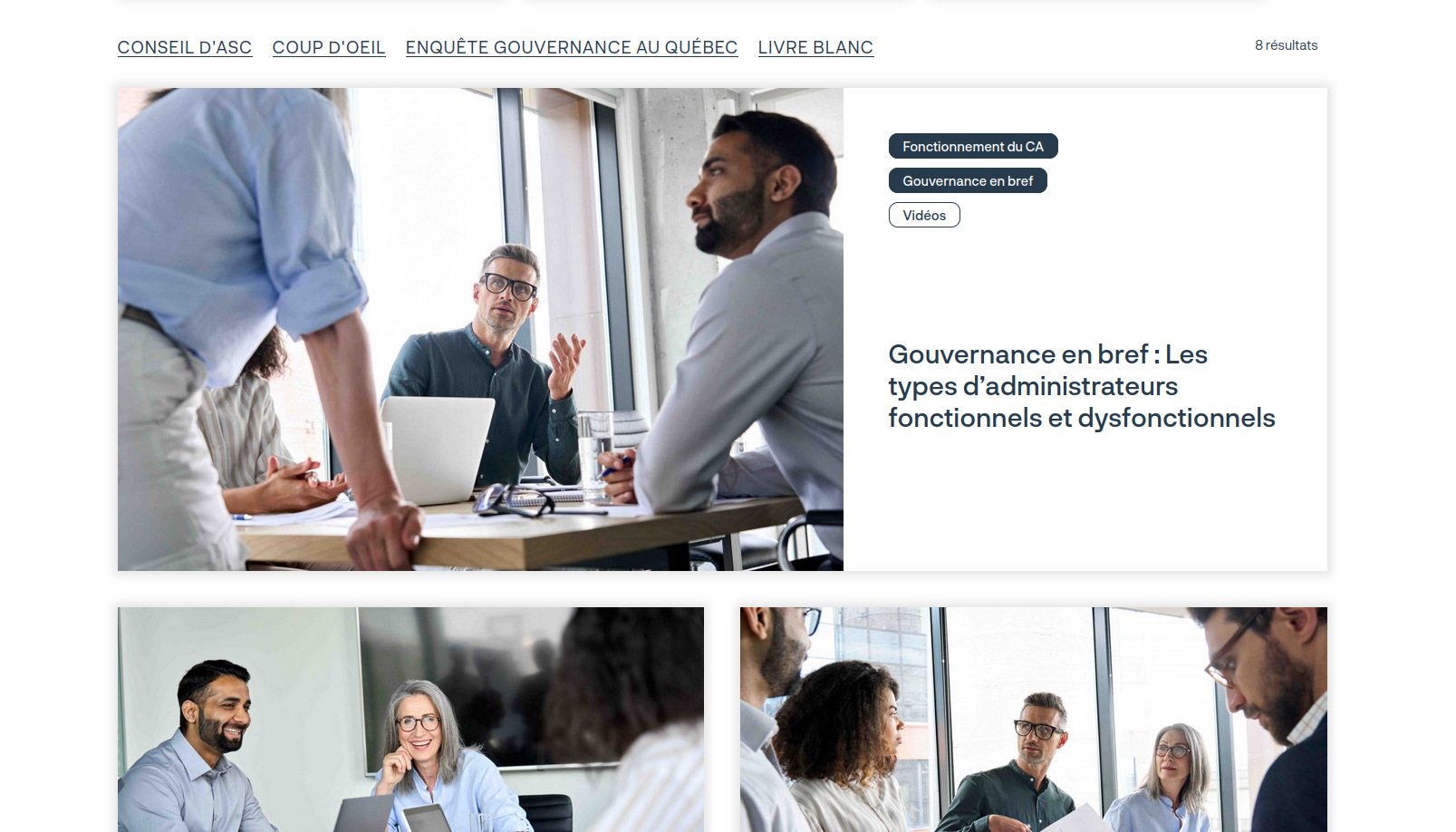 La série «Gouvernance en bref» du Collège des administrateurs de sociétés (CAS) propose des capsules vidéo concises abordant différents aspects de la gouvernance des conseils d’administration. Animée par le directeur pédagogique du CAS, Jean François Henri, ASC, C.Dir, FCPA. Chacune dure entre 2 et 5 minutes et explique avec clarté des notions essentielles comme: