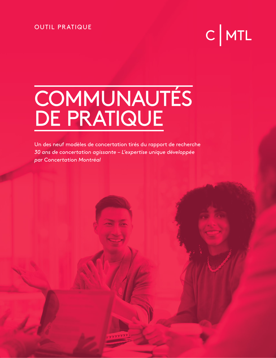 Cet outil pratique produit par Concertation Montréal (CMTL) se concentre sur l’animation des communautés de pratique, qui permet notamment le partage d’expérience, la mutualisation de ressources et le renforcement des liens entre les membres, stimulant ainsi la collaboration et les projets communs.