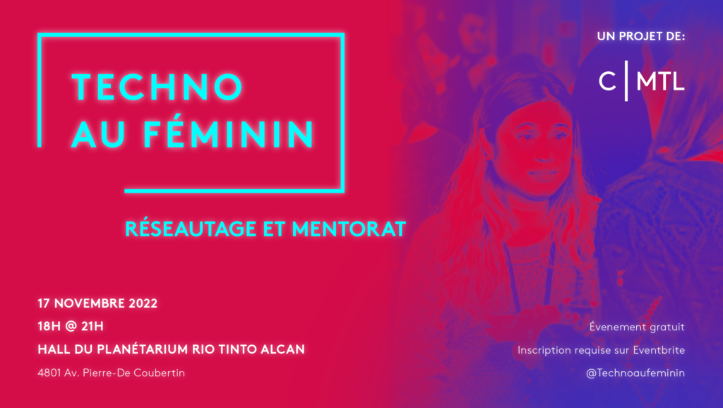 À propos de cet événement Le Mouvement montréalais Les Filles & le code, une initiative de Concertation Montréal (CMTL), organise l’événement de réseautage Techno au féminin, pour une 3e année.…